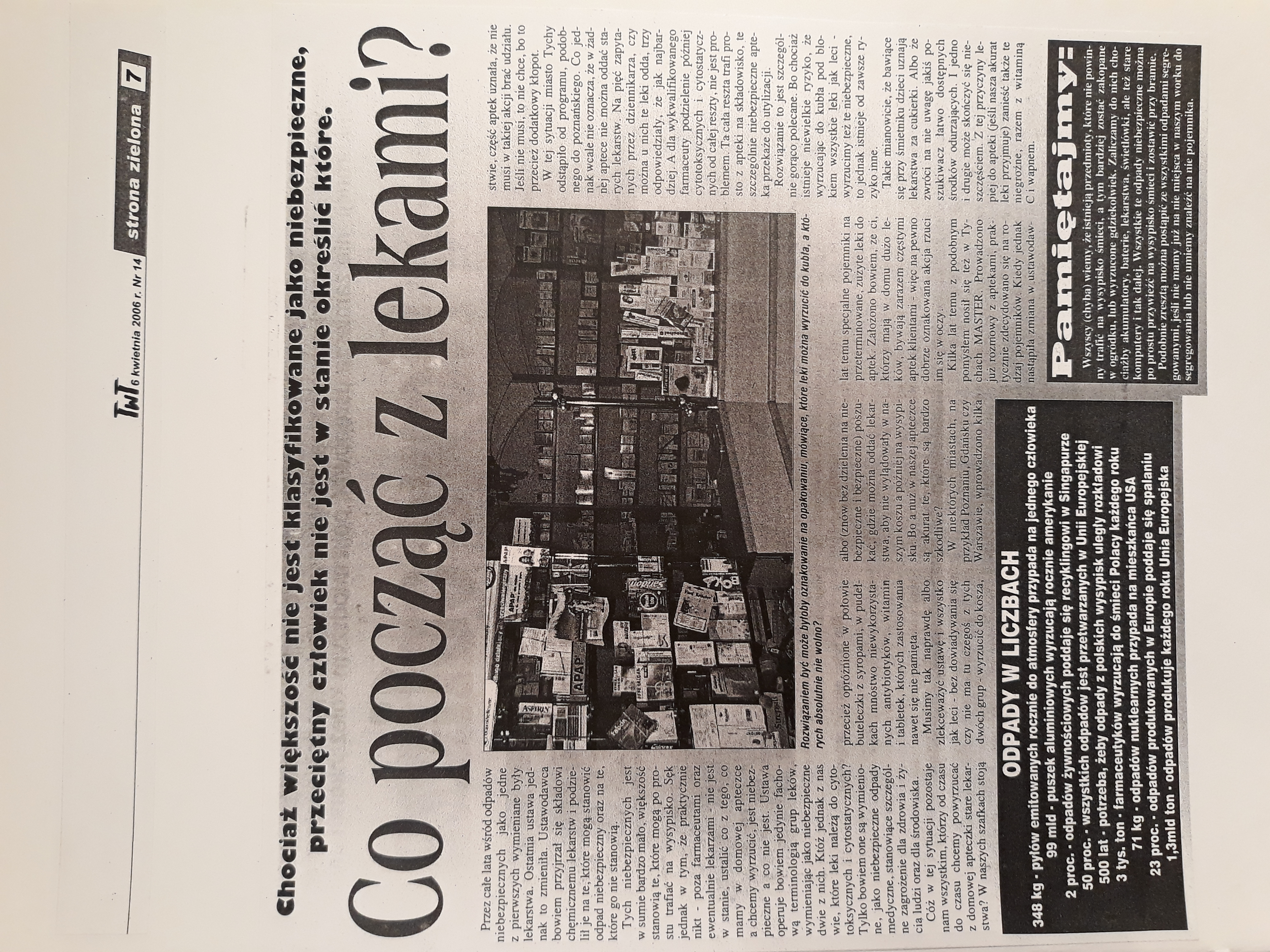 “Co począć z lekami” – Tydzień w Tychach nr 14-6.04.2006 – artykuł