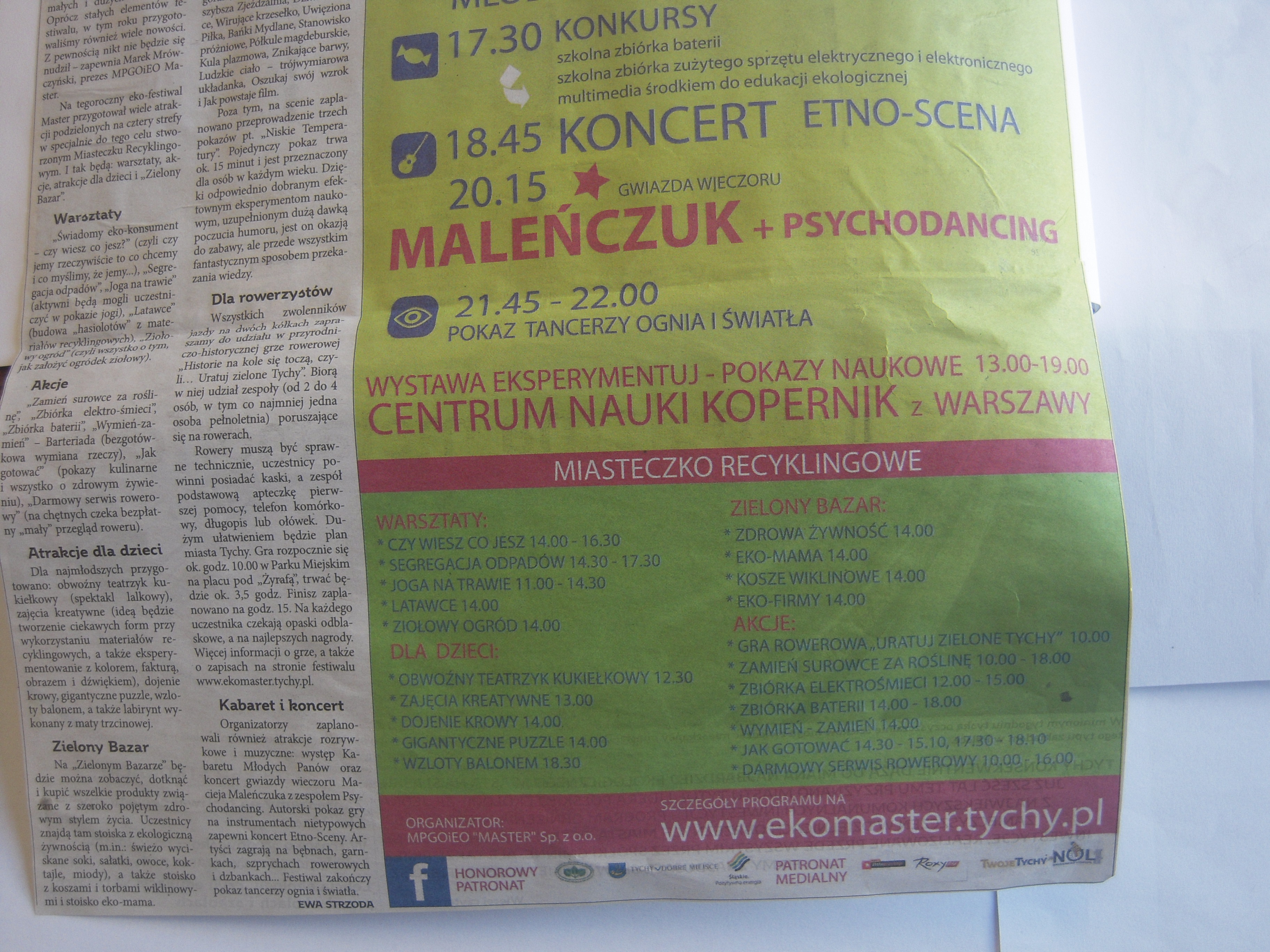 W sobotę 26 maja na placu pod “Żyrafą” odbędzie się V Festiwal Nauki i Ekolgii “Eko-Master”, którego organizatorem jest Miejskie Przedsiębiorstwo Gospodarki Odpadami i Energii Odnawialnej sp. z o.o. w Tychach…