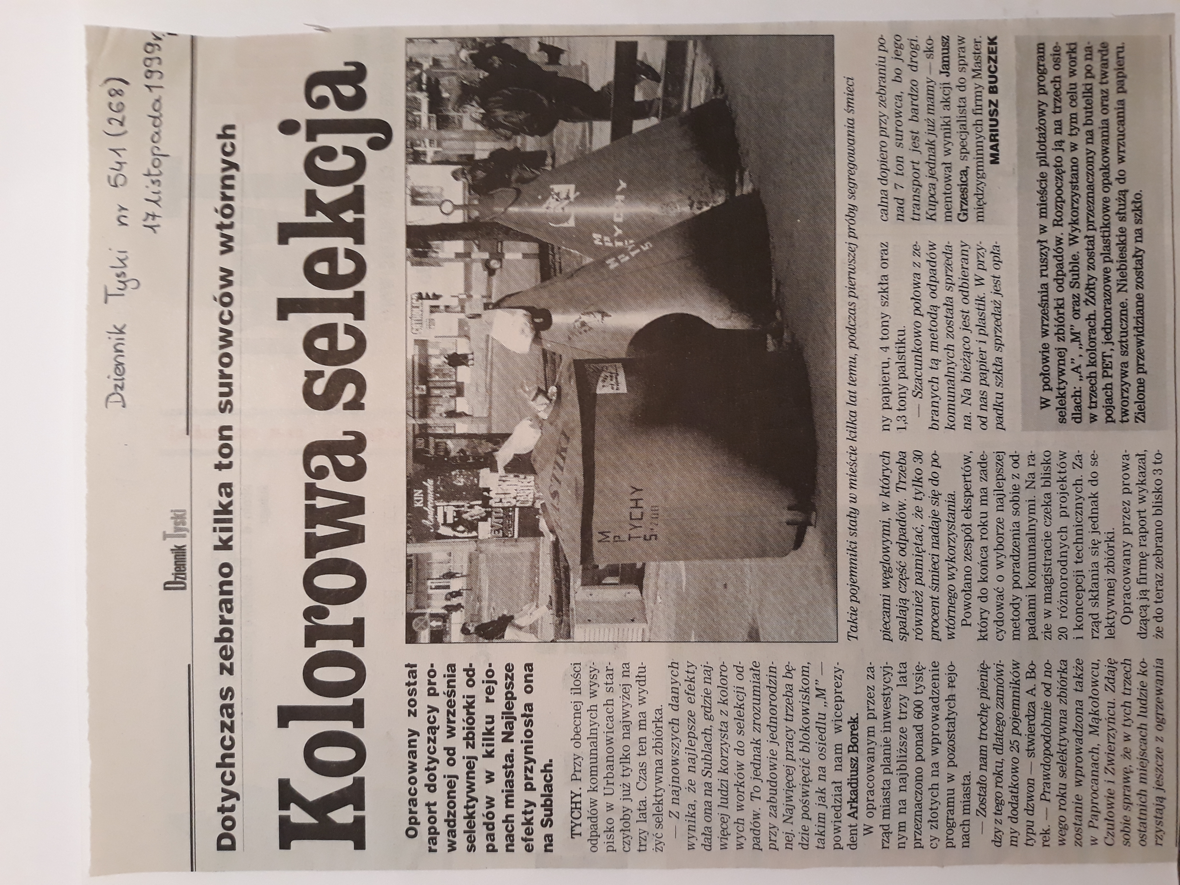 “Kolorowa selekcja” – Dziennik Tyski nr 574 17. 11.1999 – artykuł, autor: Mariusz Buczek