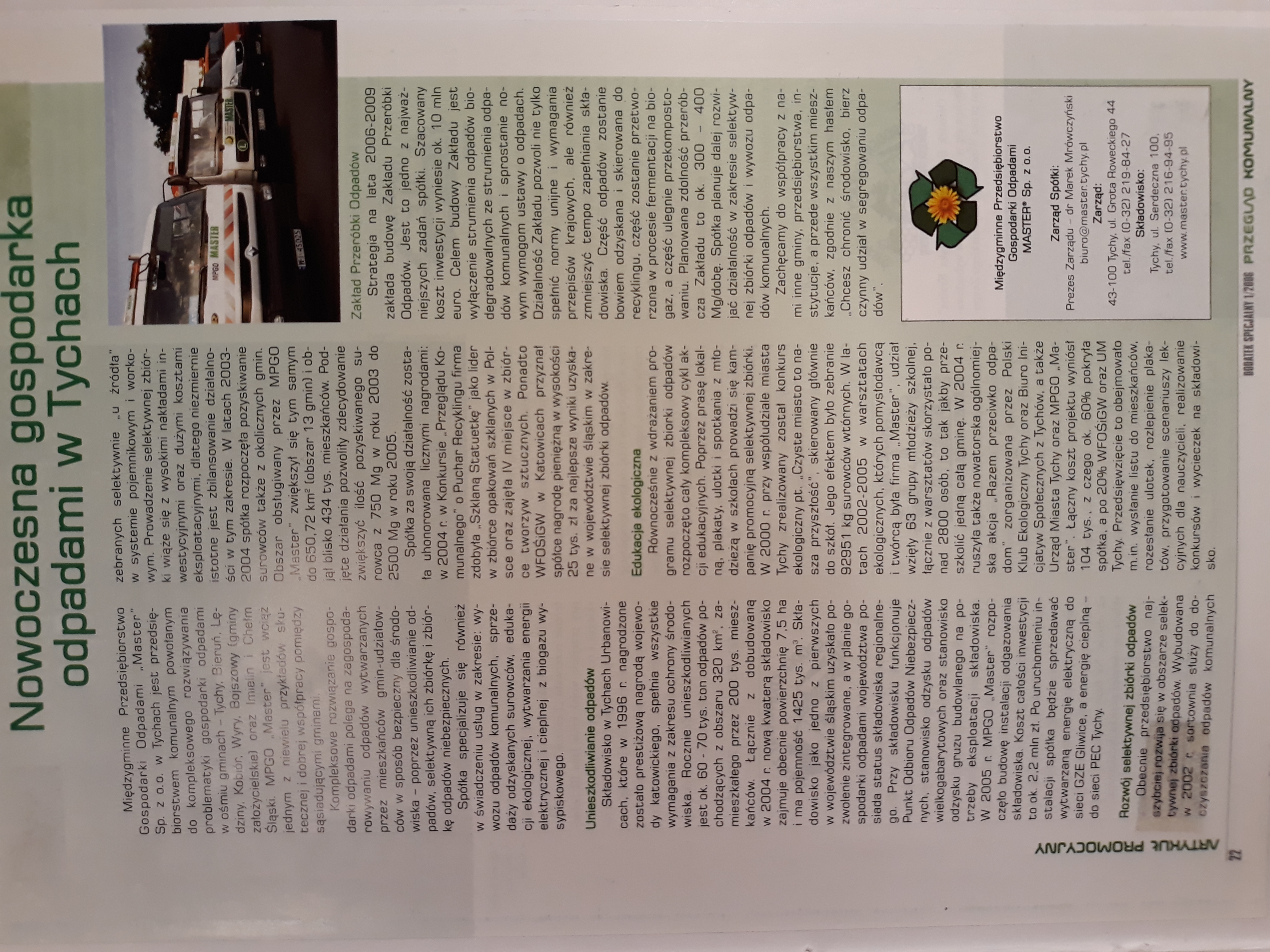 “Nowoczesna Gospodarka odpadami w Tychach” – Przegląd Komunalny-dodatek specjalny 1/2006 – artykuł promocyjny