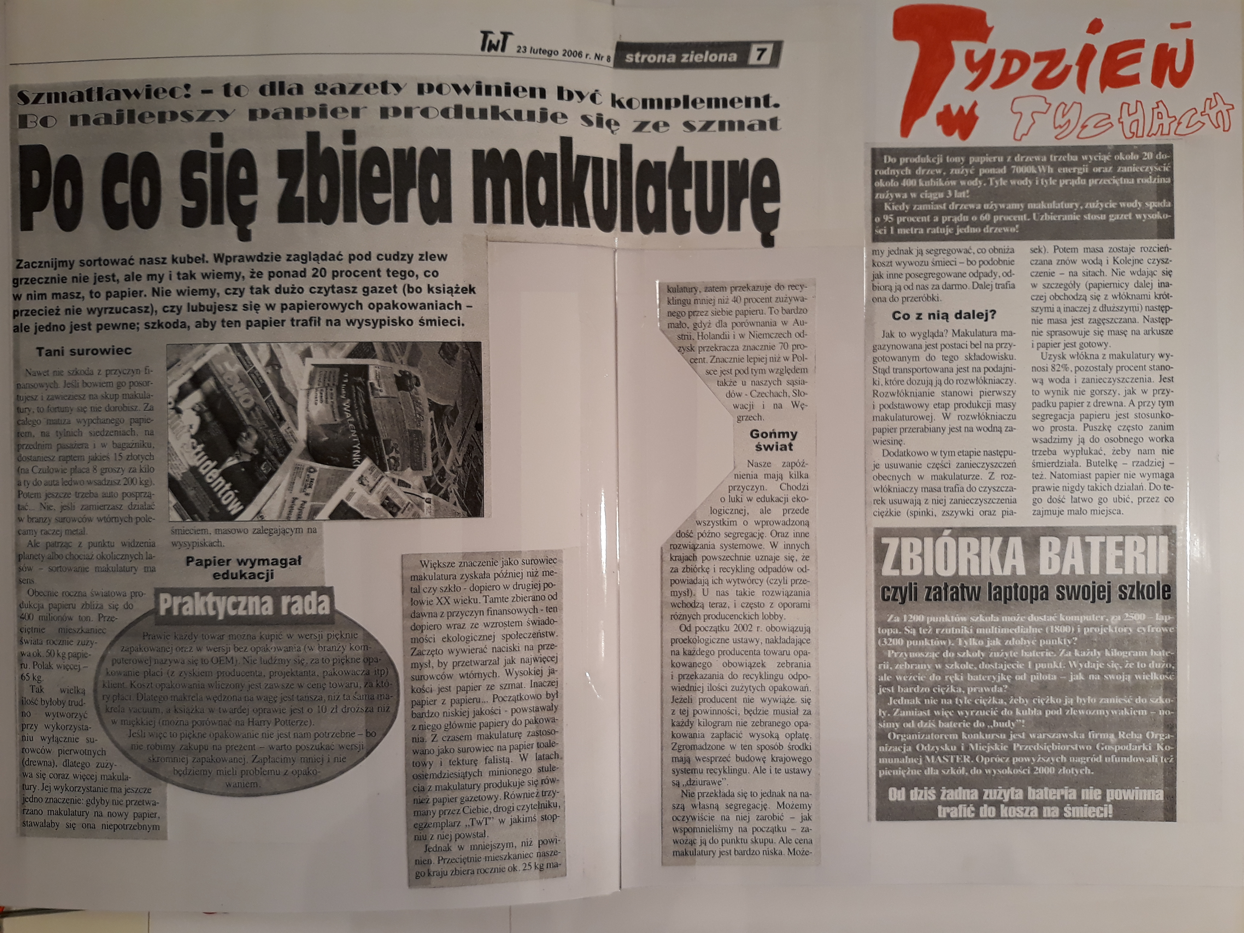 “Po co się zbiera makulaturę” – Tydzień w Tychach nr 8-23.02.2006 – artykuł
