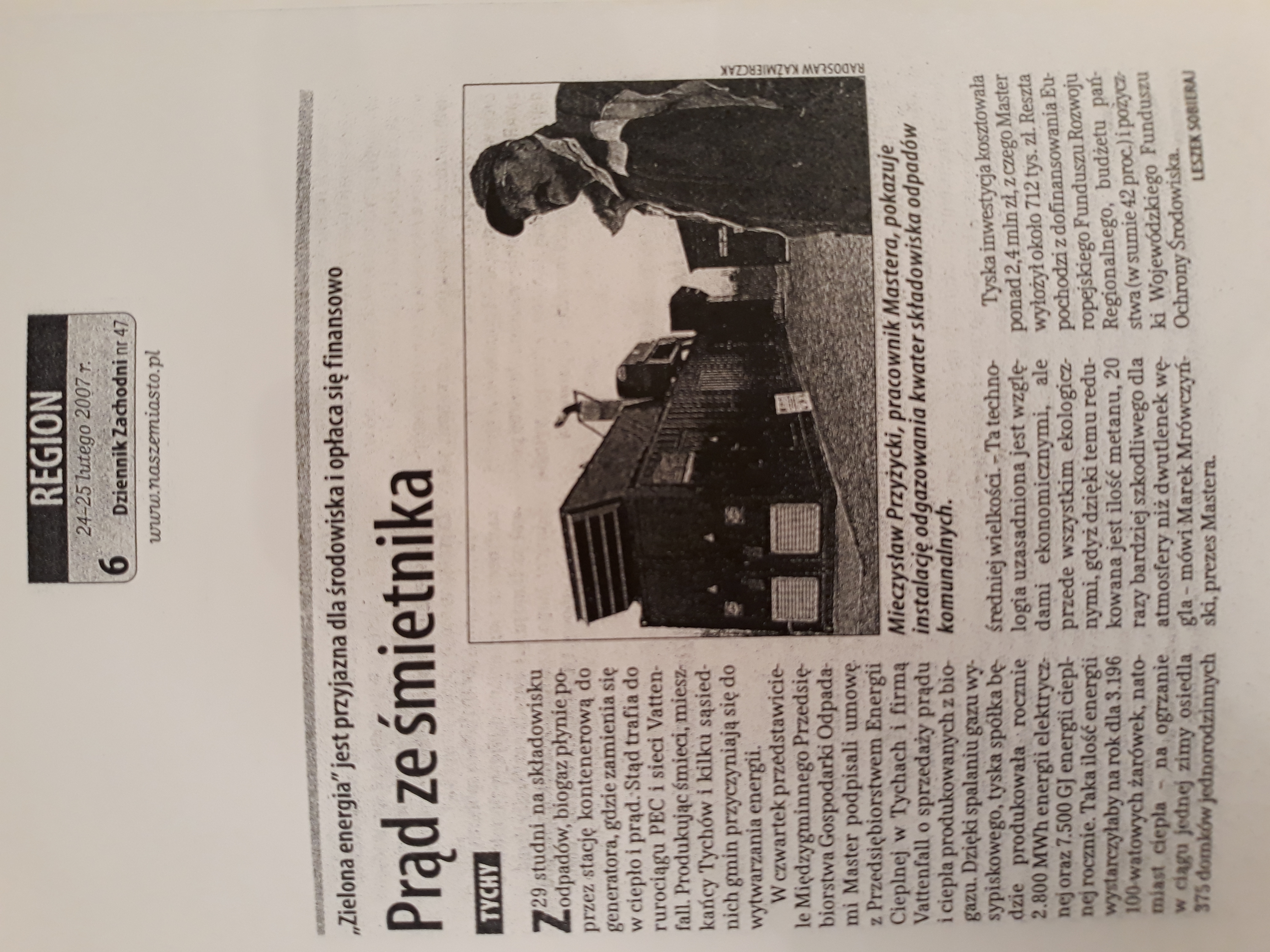 “Prąd ze śmietnika” – Dziennik Zachodni nr 47-24-25.02.2007 – artykuł, autor: Leszek Sobieraj