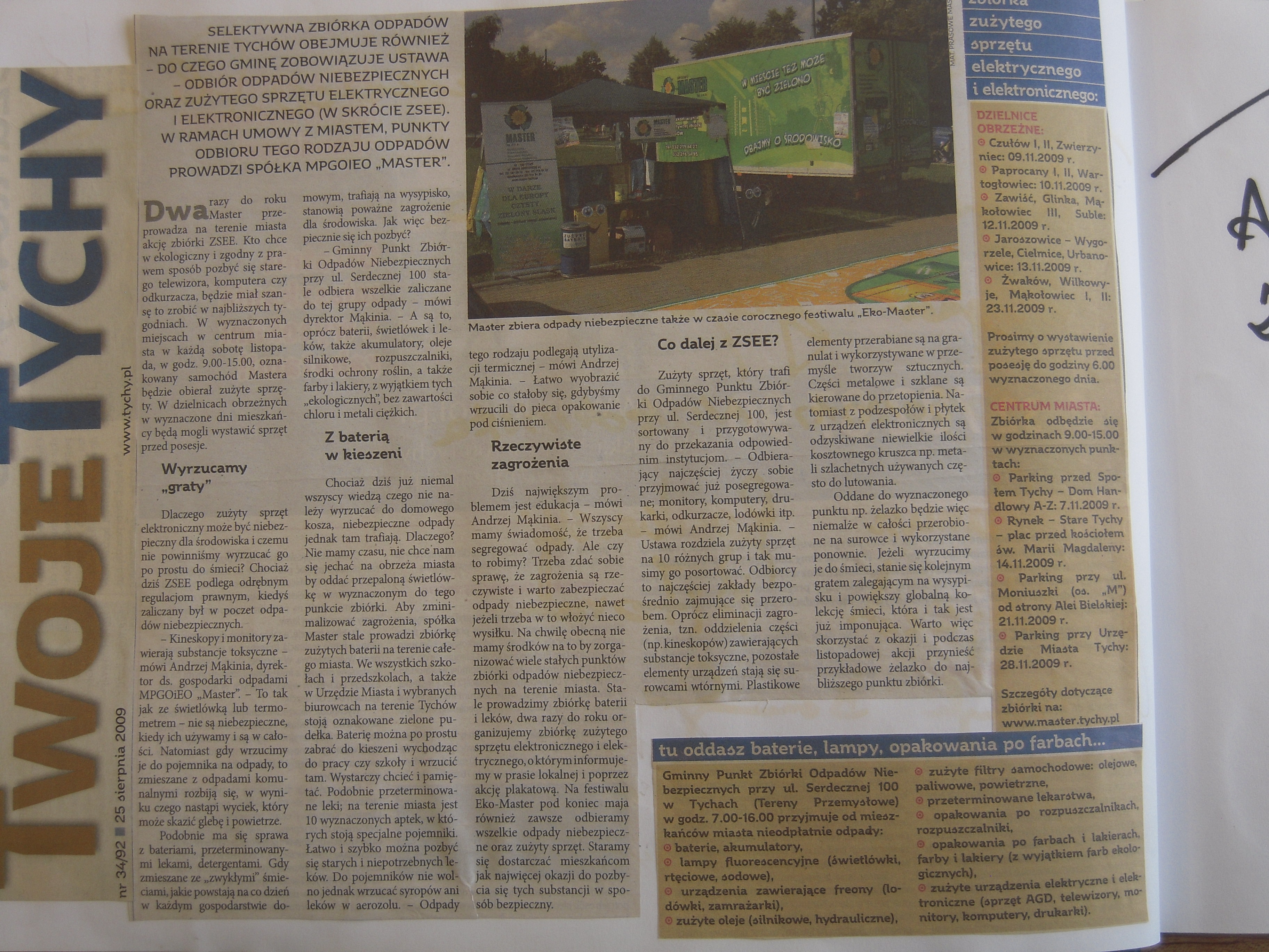 “Selektywne zbieranie odpadów” – Twoje Tychy nr.34-25.08.2009 – artykuł