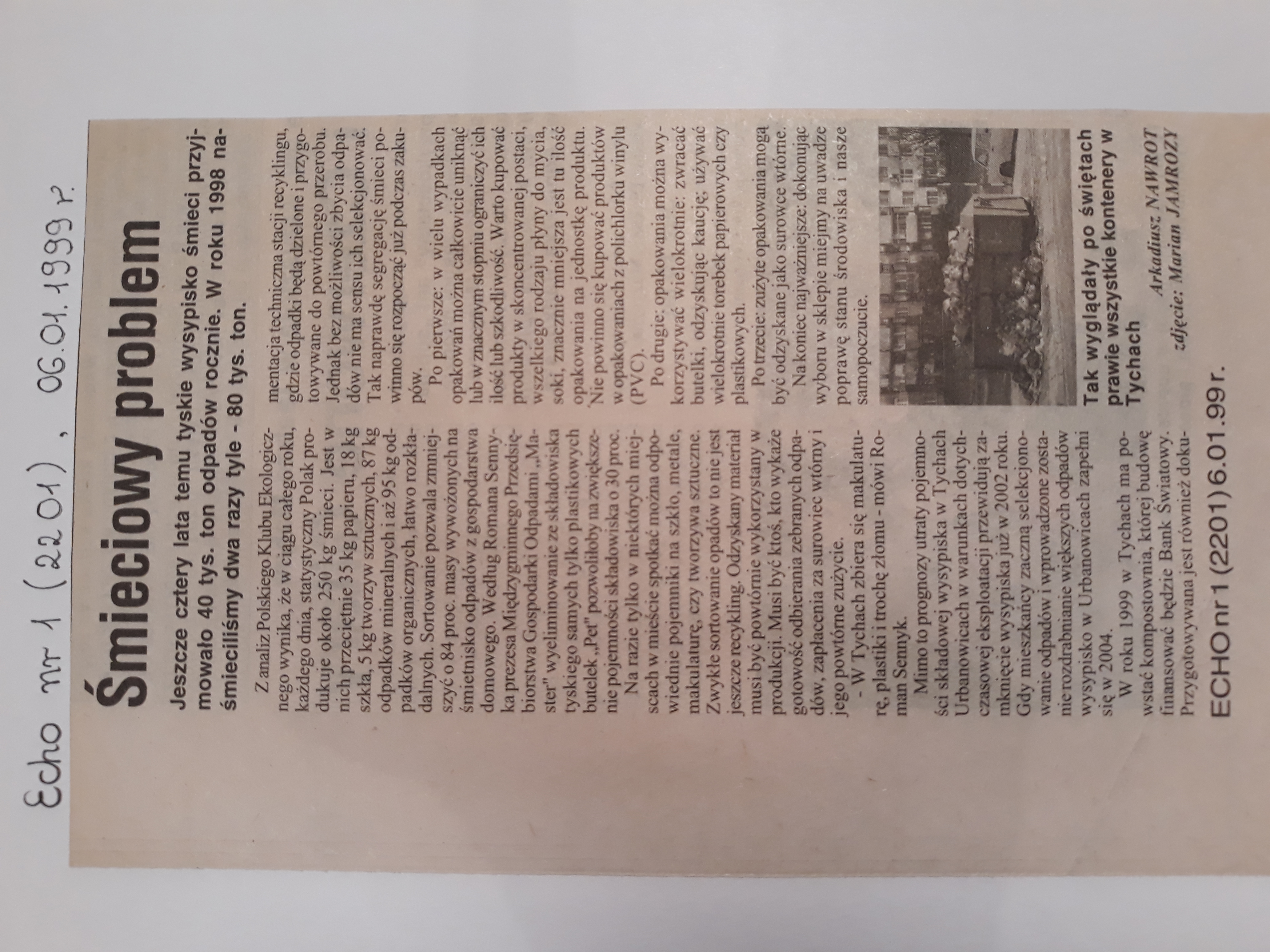 “Śmieciowy problem” – ECHO nr 1 (2201) 06.01.1999 – artykuł, autor: Arkadiusz Nawrot
