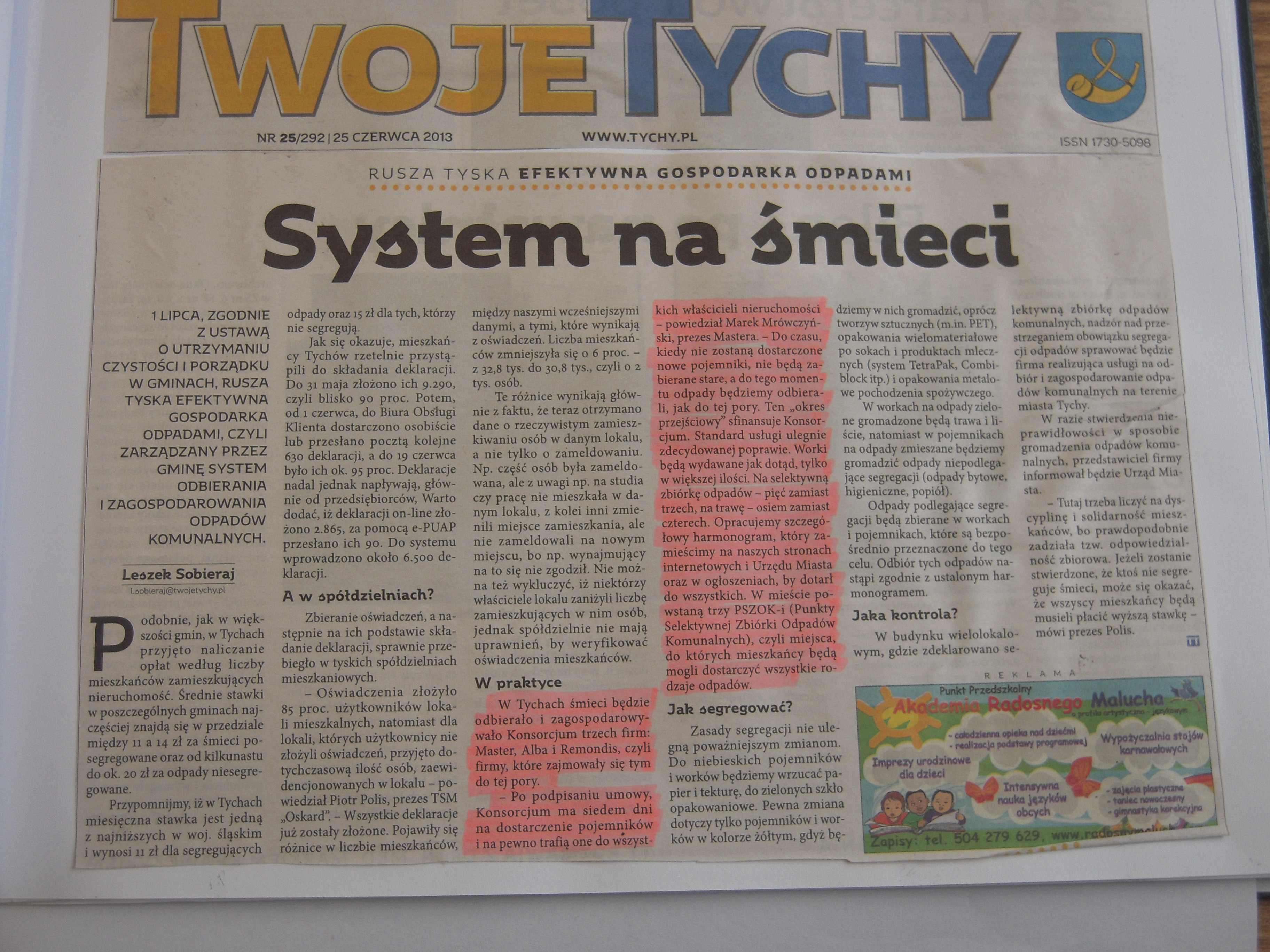 “System na śmieci” – Twoje Tychy nr 25-25.06.2013 – artykuł, autor: Leszek Sobieraj
