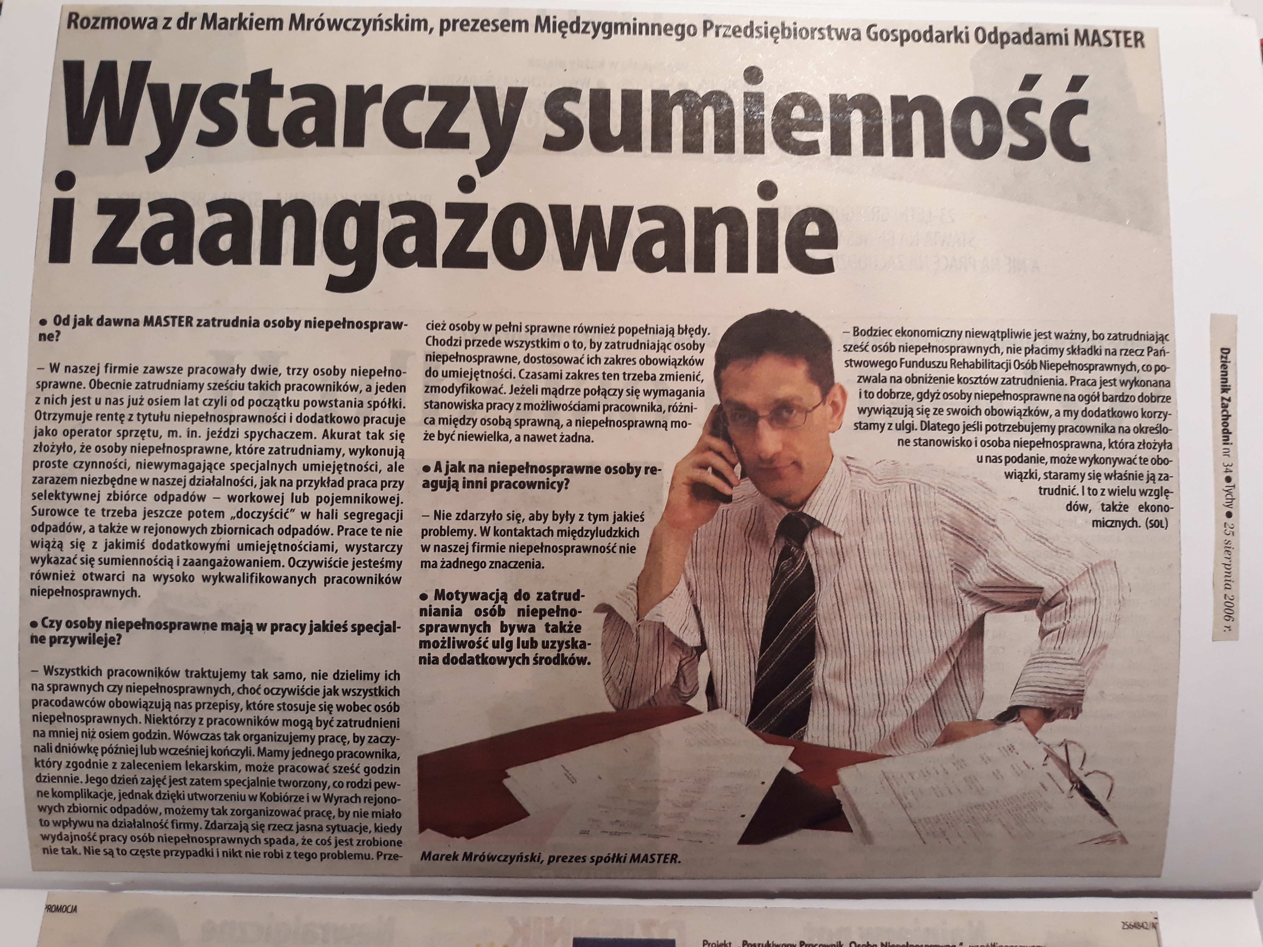Rozmowa z Markiem Mrówczyńskim, prezesem Międzygminnego Przedsiębiorstwa Gospodarki Odpadami MASTER…