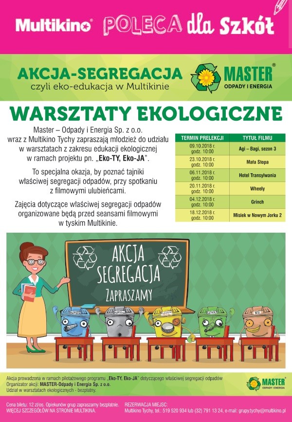 Master – Odpady i Energia Sp. z o.o. wraz z Multikino Tychy zapraszają młodzież do udziału w warsztatach z zakresu edukacji ekologicznej w ramach projektu pn. „Eko-TY, Eko-JA”.
