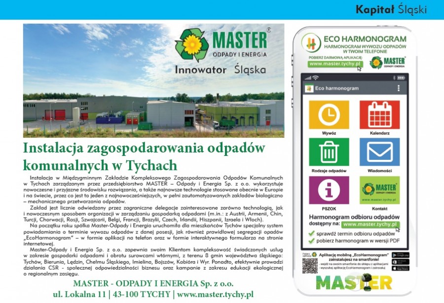 W październikowym wydaniu "Kapitału Śląskiego" została zamieszczona informacja dotycząca "Instalacji zagospodarowania odpadów komunalnych w Tychach"