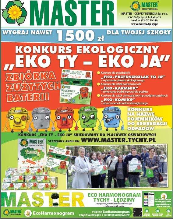 W wydaniu Tygodnika Twoje Tychy nr 50/473 z dnia 13.12.2016r. została zamieszczona informacja o kampanii informacyjno – ekologicznej dotyczącej właściwej segregacji baterii realizowanej przez Master, powiązanej z konkursem ekologicznym „EKO TY – EKO JA” realizowanym na terenie placówek oświatowych.