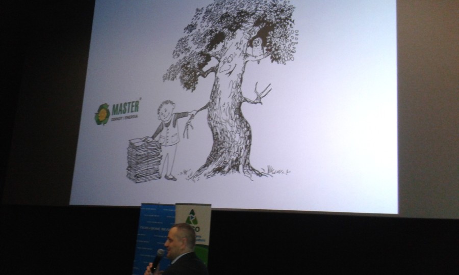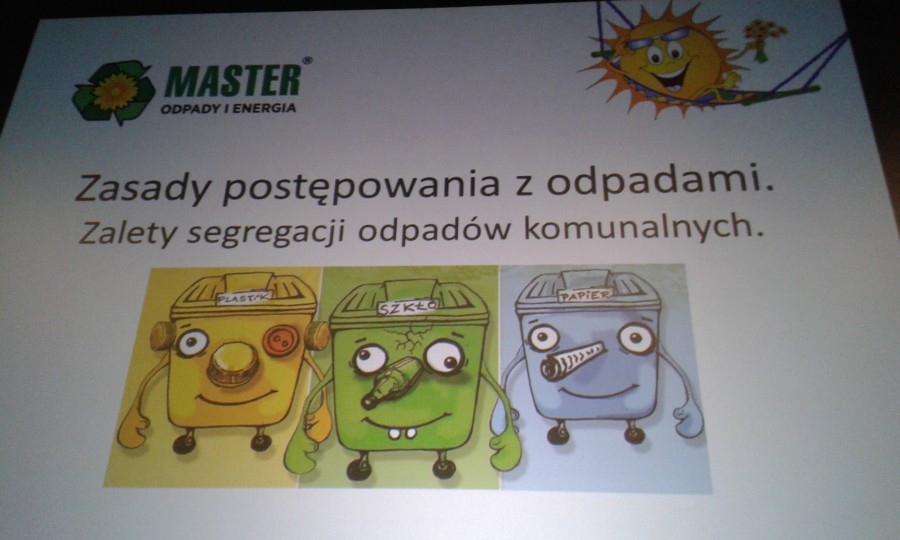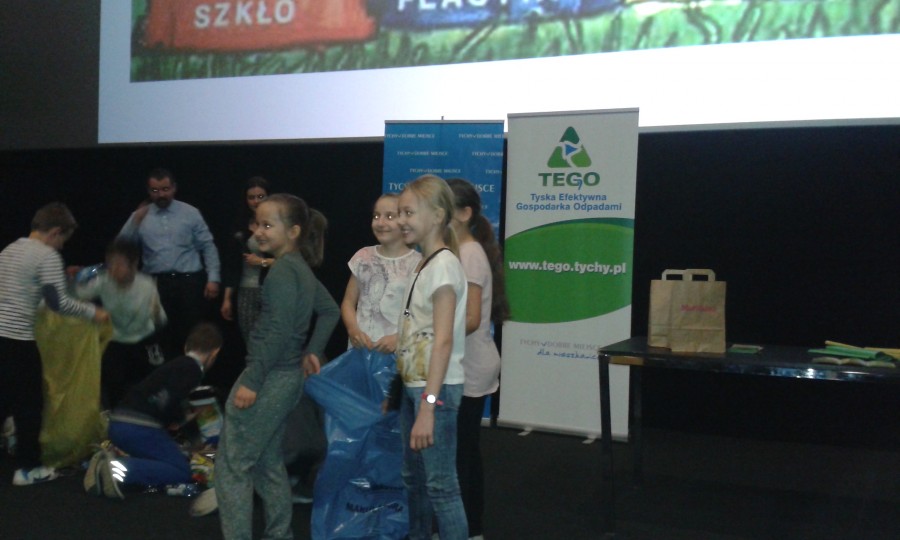 Dnia 29.04.2015r. w Tyskim Multikinie przedstawiciel Spółki MASTER przed seansem dla szkół przedstawił zasady segregowania odpadów oraz zastosowania pozyskanych surowców.
