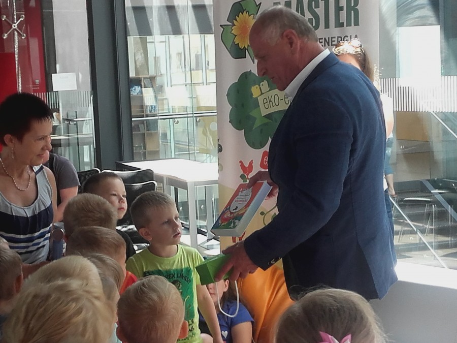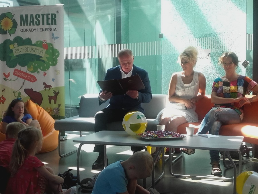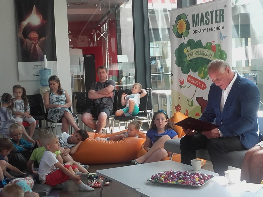Prezes MASTER – Odpady i Energia Sp. z o.o. Pan Mieczysław Podmokły w czwartek 21.07.2016r. o godz. 10.00 był gościem poranka w tyskiej Andromedzie. Podczas organizowanych zabaw dla dzieci Prezes spółki czytał dzieciom jeden z rozdziałów przygód o Muminkach.