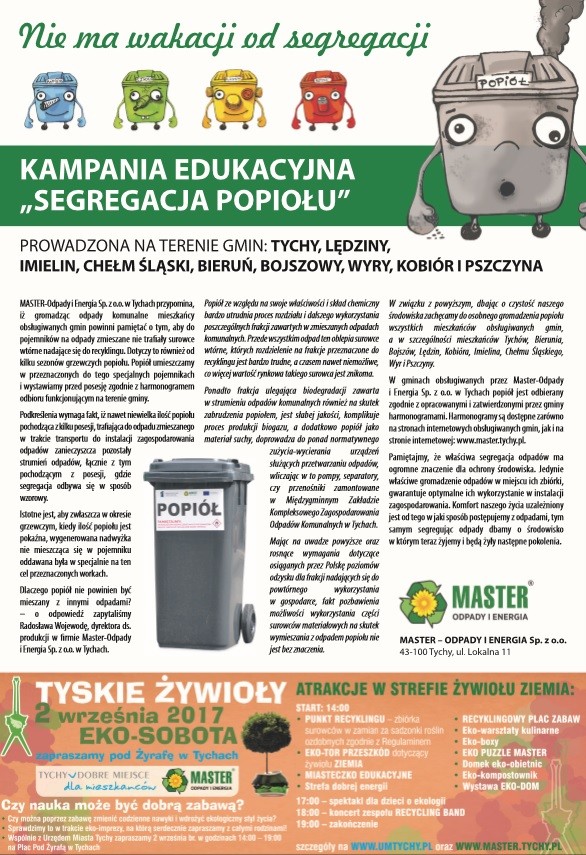 W dniu 25.08.2017r. na łamach Zielonych Stron Gazety Wyborczej ukazał się artykuł dotyczący segregacji popiołu, a także zaproszenie na TYSKIE ŻYWIOŁY.
