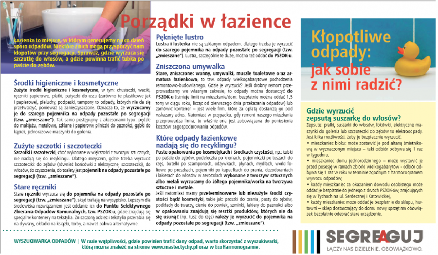 W dniu 04.08.2020 r. w Tygodniku "Twoje Tychy" nr 31/663, str. 6, opublikowany został artykuł pt. „Porządki w łazience" - dotyczący zasad segregacji.