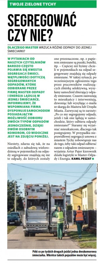 W dniu 29.10.2019 r. w Tygodniku "Twoje Tychy" nr 44/623, str. 10, opublikowany został artykuł: "Segregować czy nie?".