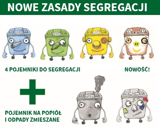 NOWE ZASADY SEGREGACJI – 4 POJEMNIKI DO SEGREGACJI! + POJEMNIK NA POPIÓŁ I ODPADY ZMIESZANE