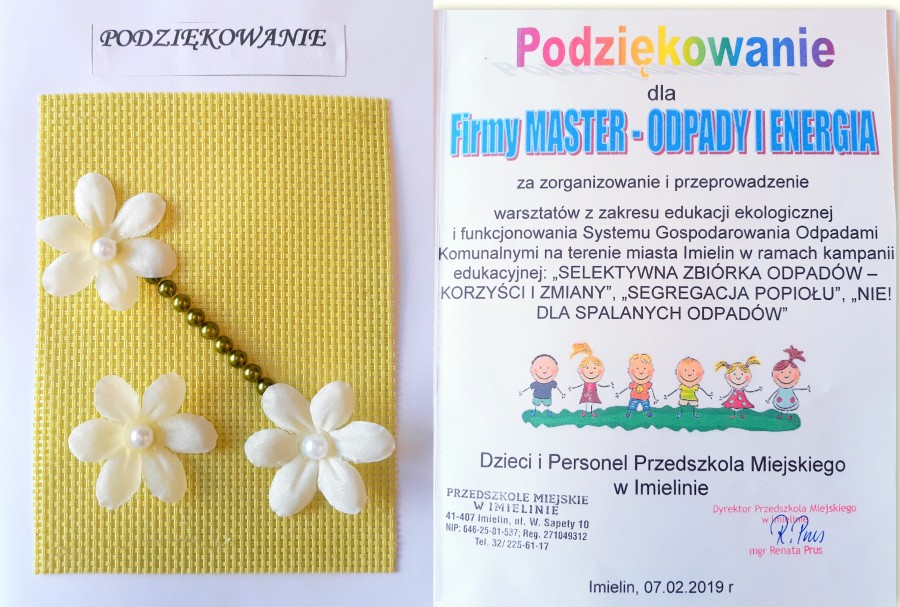 W dniu 07.02.2019r. w godzinach od 9:00 - 11:15 w Miejskim Przedszkolu w Imielinie zostały zorganizowane zajęcia ekologiczne pt. "Segreguj z Masterkiem" dla grupy 4-latków z zakresu edukacji ekologicznej