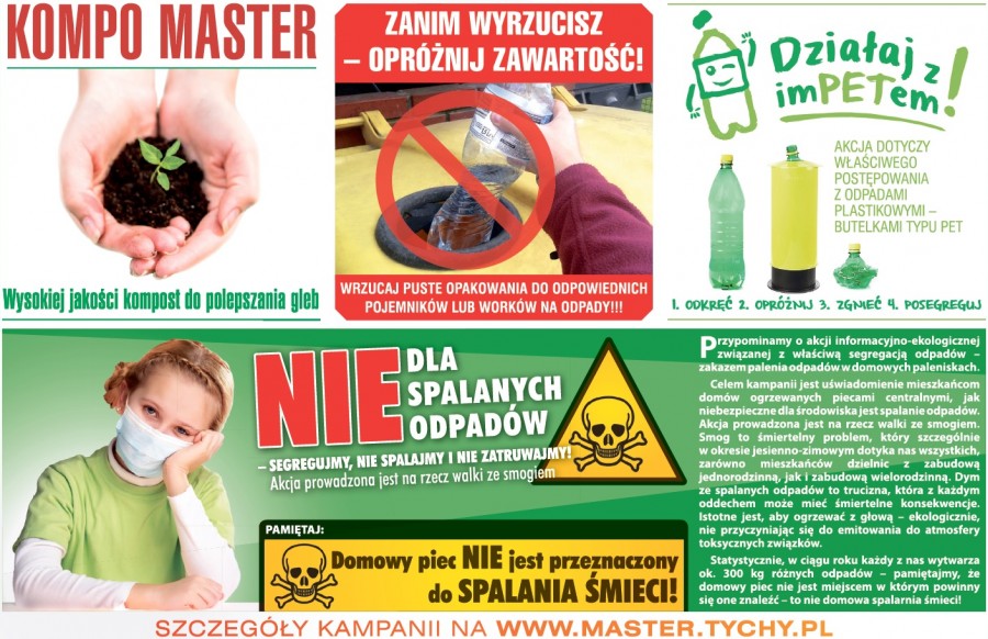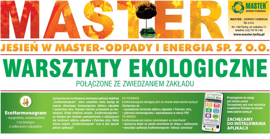W dniu 19.11.2019 r. w Tygodniku Twoje Tychy nr 47/626 opublikowany został artykuł podsumowujący działania promocyjno - informacyjne realizowane w okresie jesiennym w spółce Master: "Warsztaty ekologiczne" (str. 12), "Kampanie Promocyjno -Edukacyjne" (str. 13).