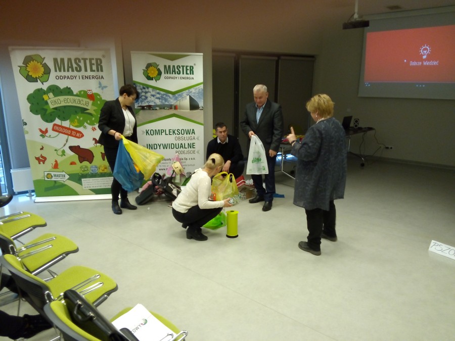 Radni z Bojszów mieli również możliwość praktycznego sprawdzenia zdobytej wiedzy segregując odpady.