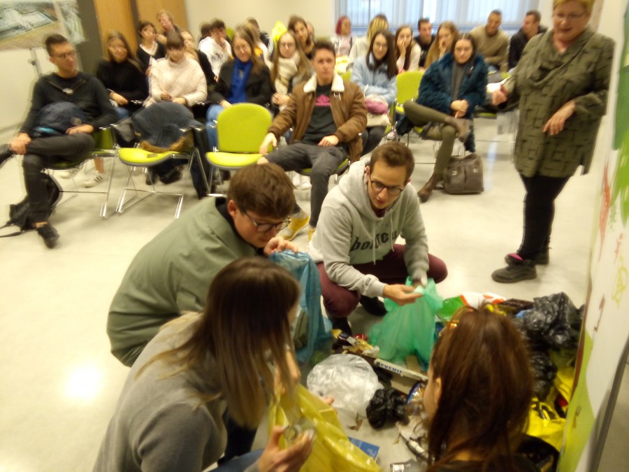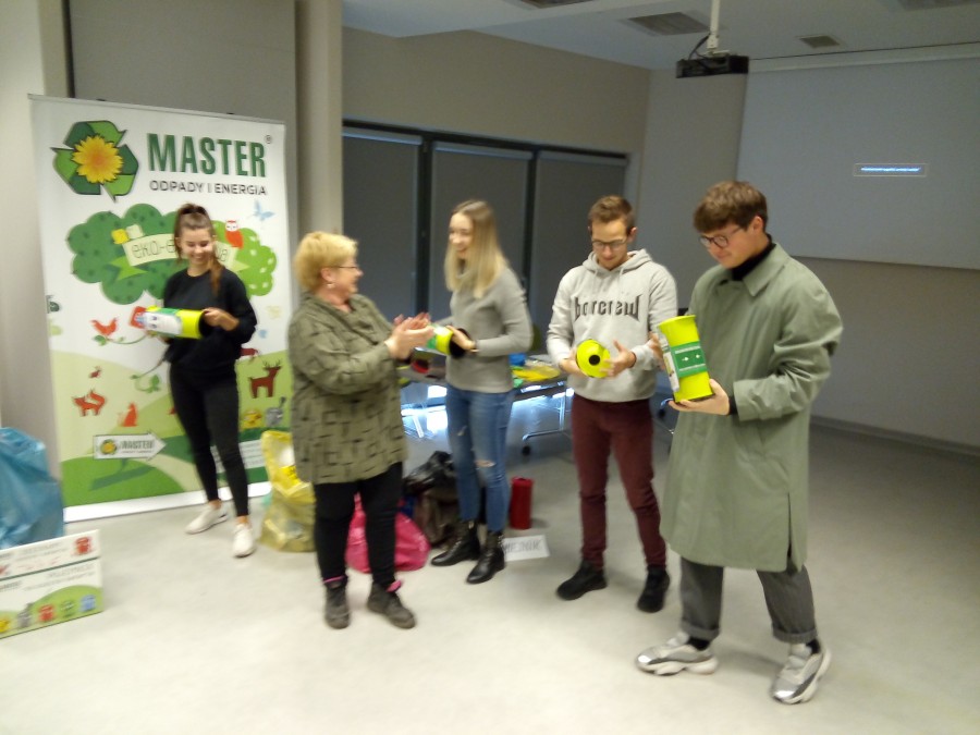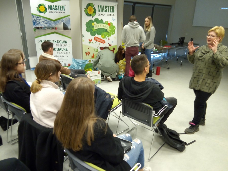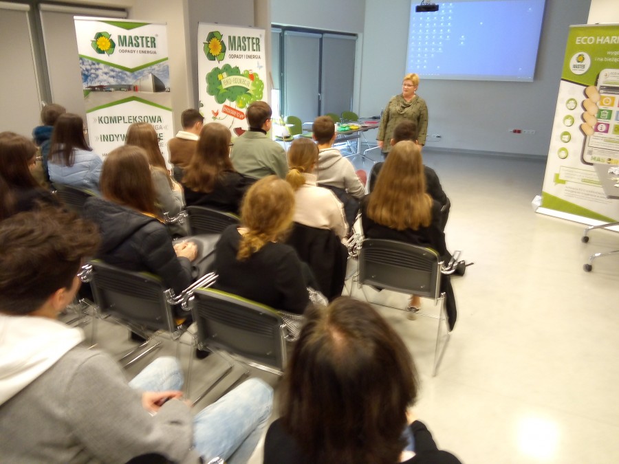 W dniu 7.11.2019 r. MASTER-Odpady i Energia Sp. z o.o. odwiedzili studenci Uniwersytetu Ekonomicznego w Katowicach. W programie wizyty były zajęcia edukacyjne na temat zasad segregacji odpadów. Zdobytą wiedzę studenci mogli następnie zweryfikować segregując odpady i umieszczając je w workach: w żółtych - plastik i metale, w zielonych - szkło, w niebieskich - papier i tekturę, w brązowych - odpady kuchenne. Odpady niebezpieczne – baterie, żarówki – trafiały do worka czerwonego.